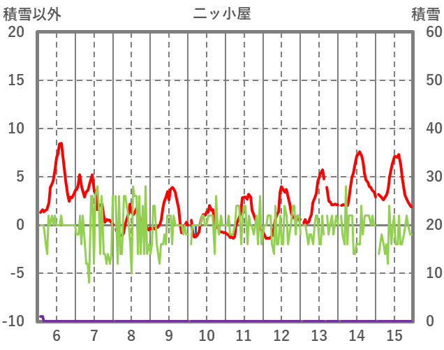 | 日 | 時 | 気温 | 降水 | 風向/風速 | 日照 | 積雪 | 降雪 |