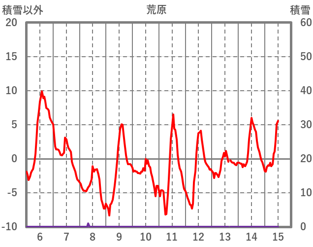 | 日 | 時 | 気温 | 降水 | 風向/風速 | 日照 | 積雪 | 降雪 |
