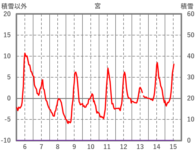 | 日 | 時 | 気温 | 降水 | 風向/風速 | 日照 | 積雪 | 降雪 |