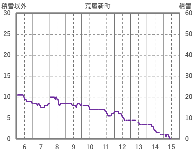 | 日 | 時 | 気温 | 降水 | 風向/風速 | 日照 | 積雪 | 降雪 |