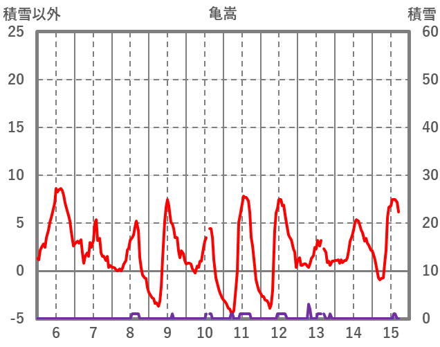 | 日 | 時 | 気温 | 降水 | 風向/風速 | 日照 | 積雪 | 降雪 |