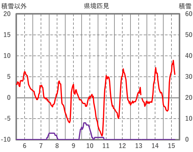 | 日 | 時 | 気温 | 降水 | 風向/風速 | 日照 | 積雪 | 降雪 |