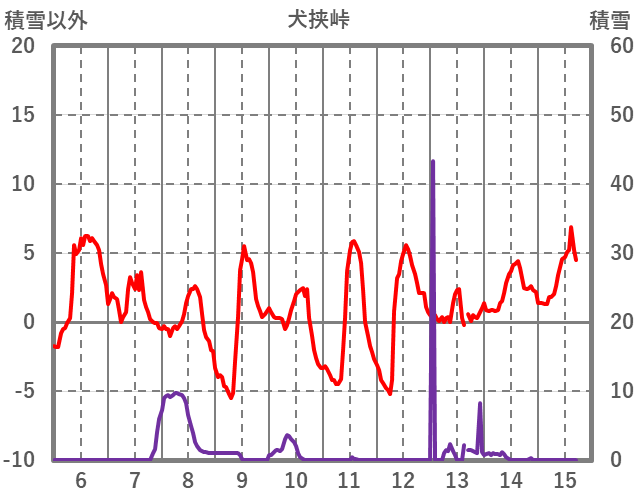 | 日 | 時 | 気温 | 降水 | 風向/風速 | 日照 | 積雪 | 降雪 |