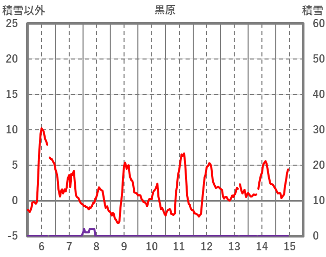 | 日 | 時 | 気温 | 降水 | 風向/風速 | 日照 | 積雪 | 降雪 |
