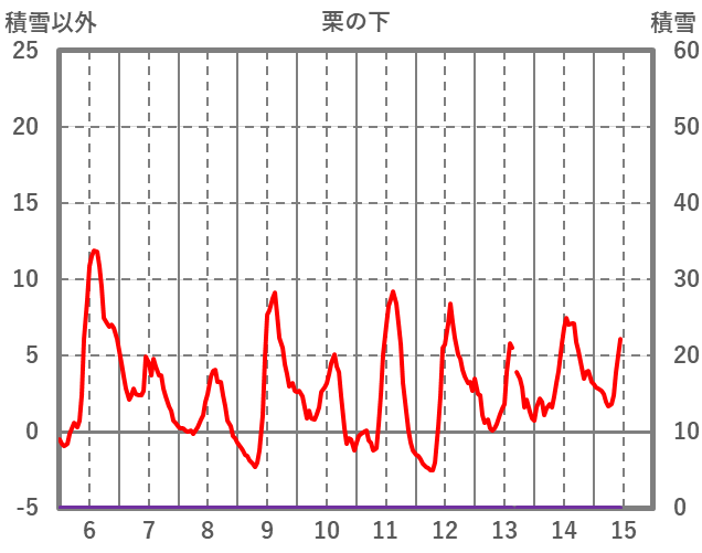 | 日 | 時 | 気温 | 降水 | 風向/風速 | 日照 | 積雪 | 降雪 |