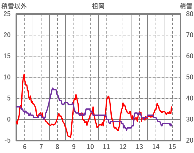 | 日 | 時 | 気温 | 降水 | 風向/風速 | 日照 | 積雪 | 降雪 |