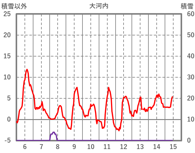 | 日 | 時 | 気温 | 降水 | 風向/風速 | 日照 | 積雪 | 降雪 |