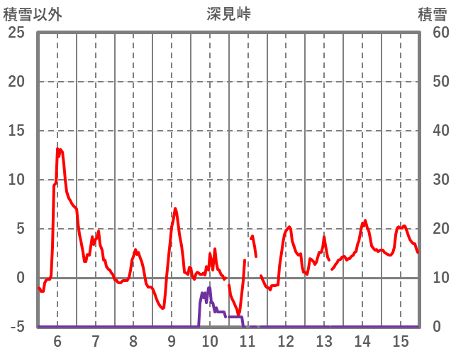 | 日 | 時 | 気温 | 降水 | 風向/風速 | 日照 | 積雪 | 降雪 |