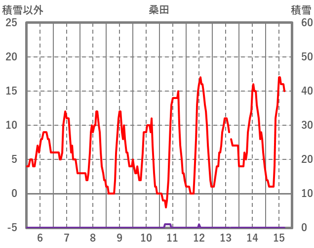 | 日 | 時 | 気温 | 降水 | 風向/風速 | 日照 | 積雪 | 降雪 |