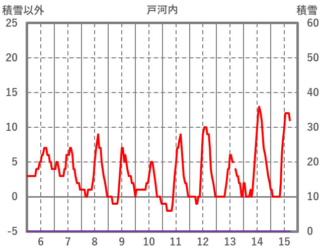 | 日 | 時 | 気温 | 降水 | 風向/風速 | 日照 | 積雪 | 降雪 |