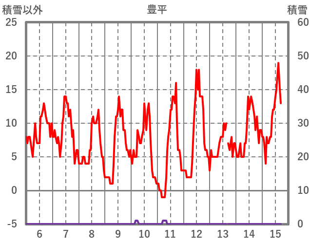 | 日 | 時 | 気温 | 降水 | 風向/風速 | 日照 | 積雪 | 降雪 |