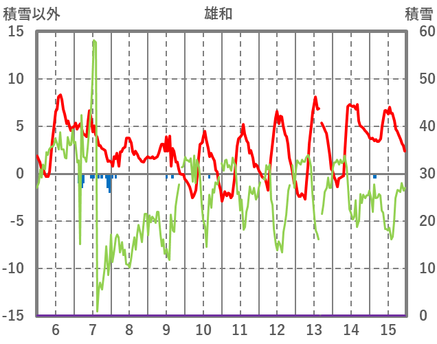 | 日 | 時 | 気温 | 降水 | 風向/風速 | 日照 | 積雪 | 降雪 |