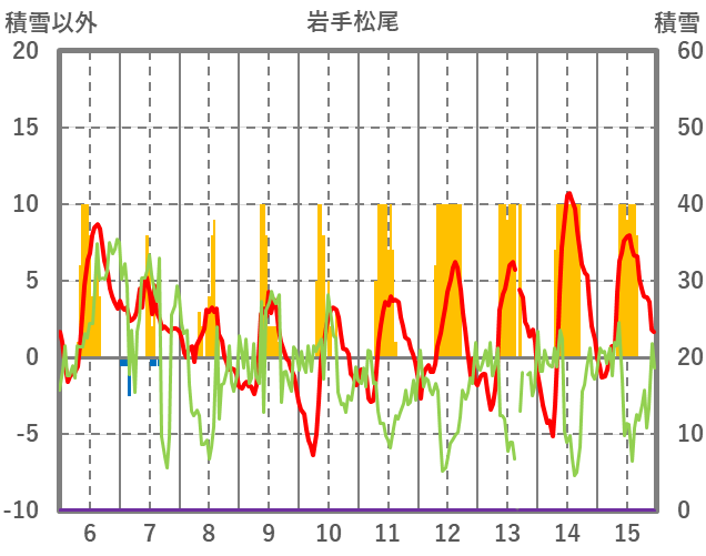 | 日 | 時 | 気温 | 降水 | 風向/風速 | 日照 | 積雪 | 降雪 |
