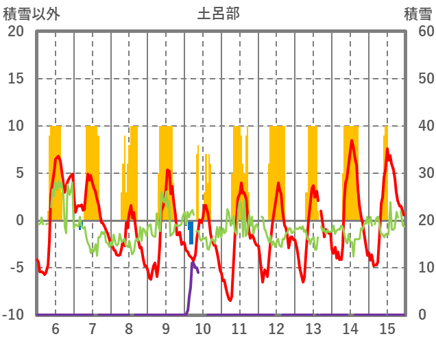 | 日 | 時 | 気温 | 降水 | 風向/風速 | 日照 | 積雪 | 降雪 |