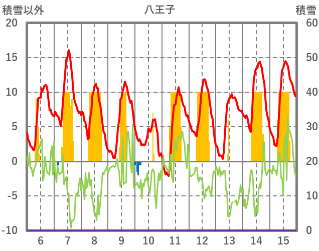 | 日 | 時 | 気温 | 降水 | 風向/風速 | 日照 | 積雪 | 降雪 |
