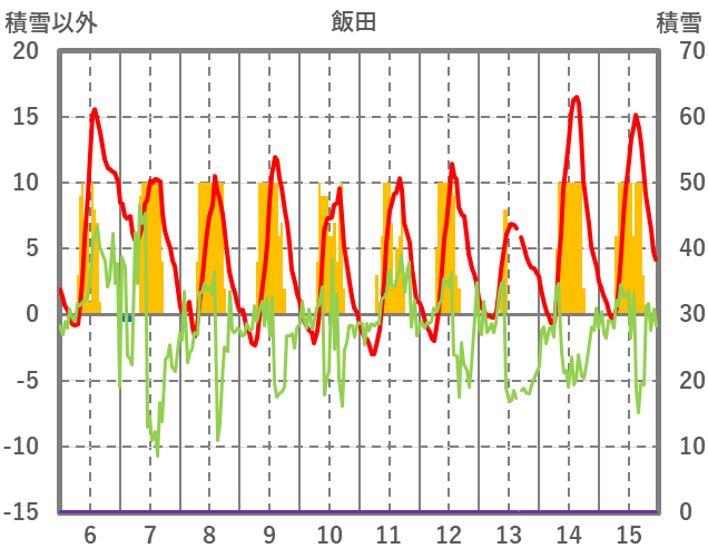 | 日 | 時 | 気温 | 降水 | 風向/風速 | 日照 | 積雪 | 降雪 |