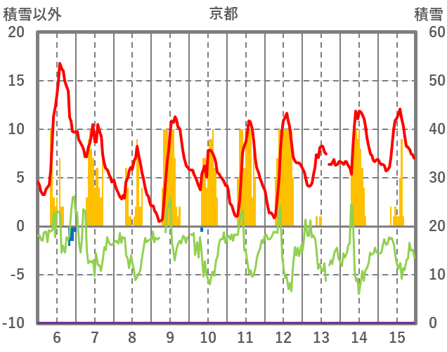 | 日 | 時 | 気温 | 降水 | 風向/風速 | 日照 | 積雪 | 降雪 |