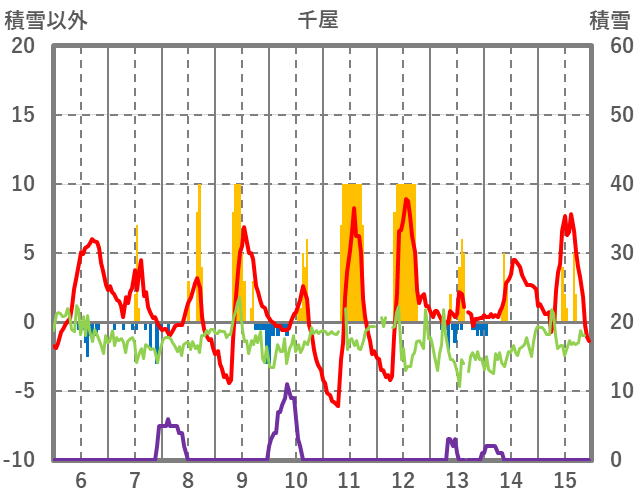 | 日 | 時 | 気温 | 降水 | 風向/風速 | 日照 | 積雪 | 降雪 |
