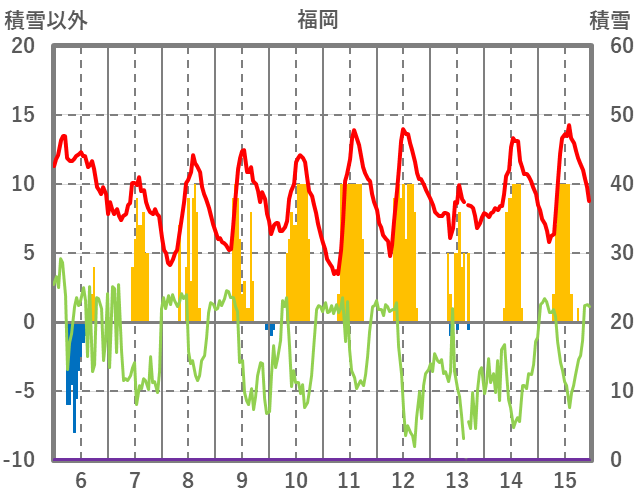 | 日 | 時 | 気温 | 降水 | 風向/風速 | 日照 | 積雪 | 降雪 |