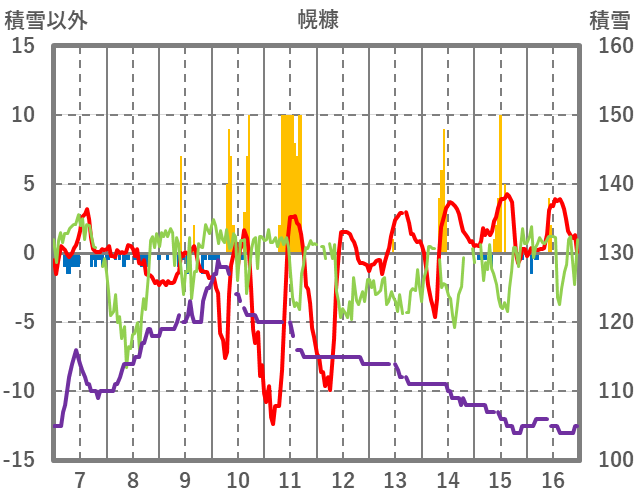 | 日 | 時 | 気温 | 降水 | 風向/風速 | 日照 | 積雪 | 降雪 |