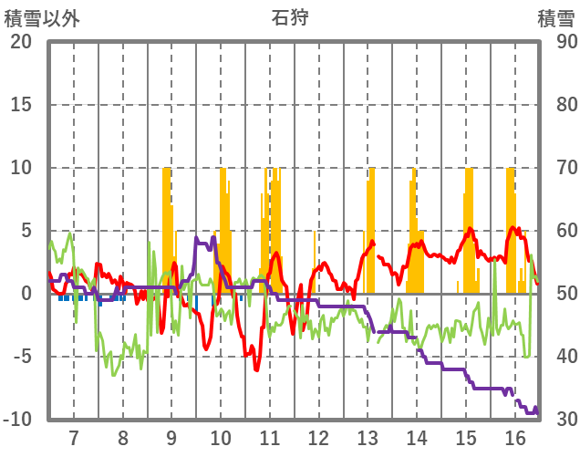| 日 | 時 | 気温 | 降水 | 風向/風速 | 日照 | 積雪 | 降雪 |