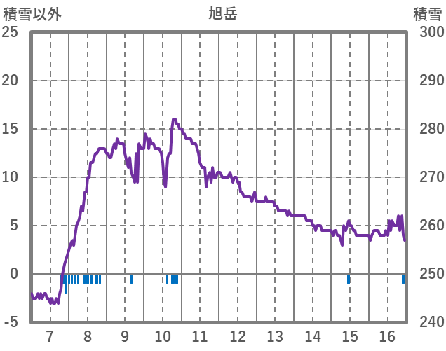 | 日 | 時 | 気温 | 降水 | 風向/風速 | 日照 | 積雪 | 降雪 |
