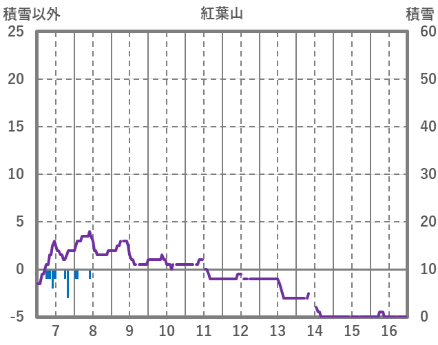 | 日 | 時 | 気温 | 降水 | 風向/風速 | 日照 | 積雪 | 降雪 |