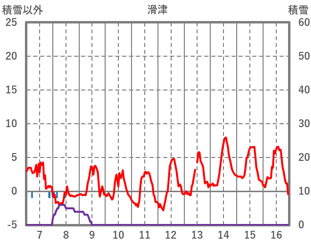 | 日 | 時 | 気温 | 降水 | 風向/風速 | 日照 | 積雪 | 降雪 |