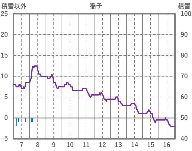 | 日 | 時 | 気温 | 降水 | 風向/風速 | 日照 | 積雪 | 降雪 |