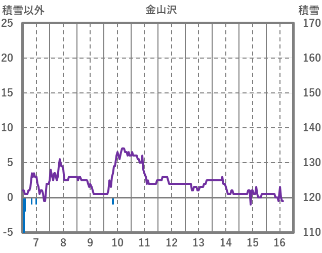 | 日 | 時 | 気温 | 降水 | 風向/風速 | 日照 | 積雪 | 降雪 |