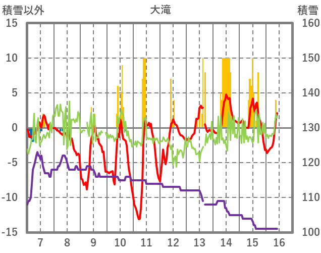 | 日 | 時 | 気温 | 降水 | 風向/風速 | 日照 | 積雪 | 降雪 |