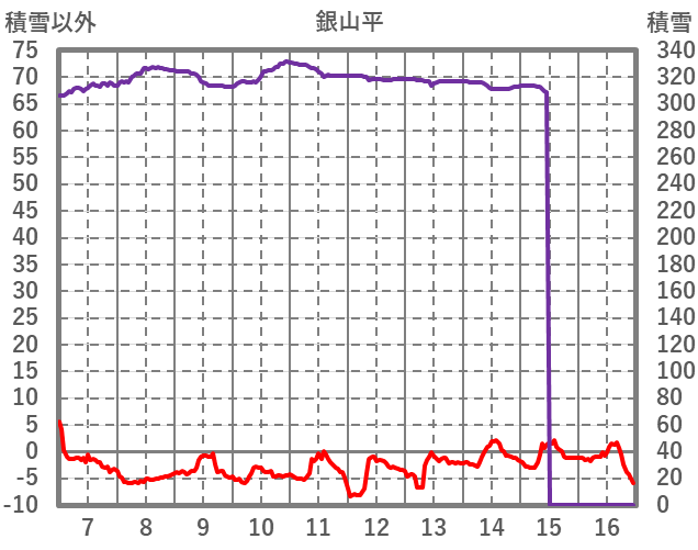 | 日 | 時 | 気温 | 降水 | 風向/風速 | 日照 | 積雪 | 降雪 |