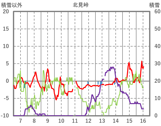 | 日 | 時 | 気温 | 降水 | 風向/風速 | 日照 | 積雪 | 降雪 |