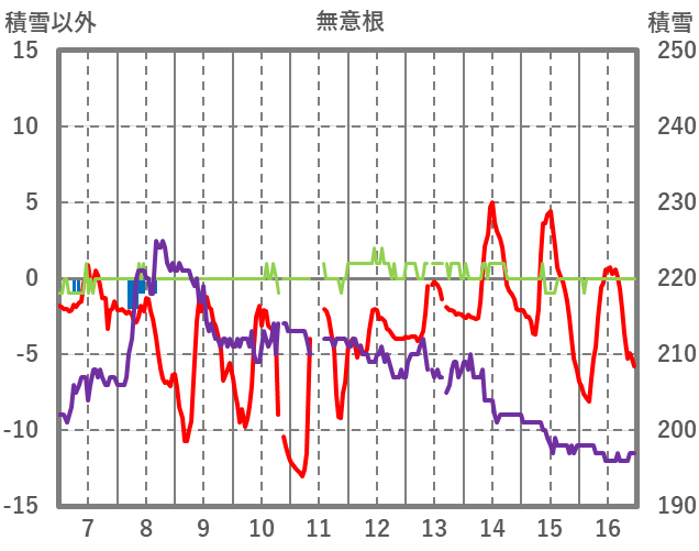 | 日 | 時 | 気温 | 降水 | 風向/風速 | 日照 | 積雪 | 降雪 |