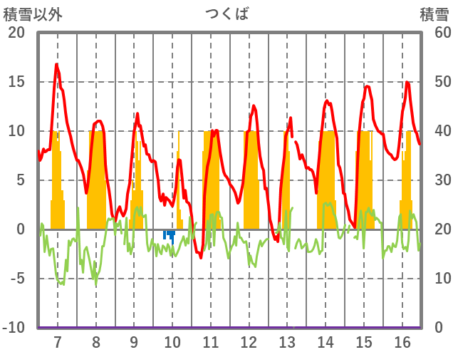 | 日 | 時 | 気温 | 降水 | 風向/風速 | 日照 | 積雪 | 降雪 |