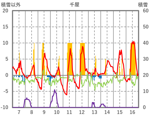 | 日 | 時 | 気温 | 降水 | 風向/風速 | 日照 | 積雪 | 降雪 |