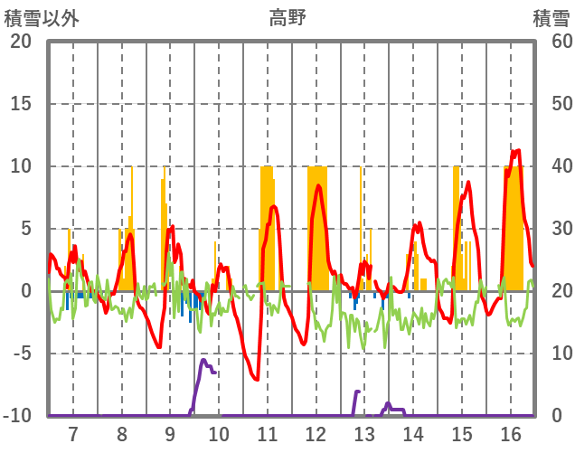 | 日 | 時 | 気温 | 降水 | 風向/風速 | 日照 | 積雪 | 降雪 |