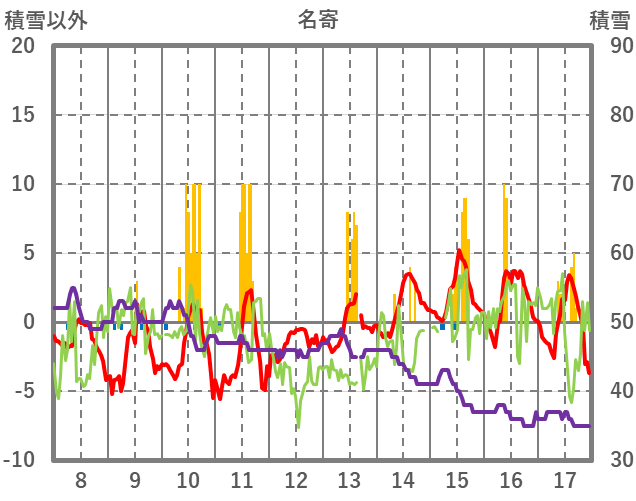 | 日 | 時 | 気温 | 降水 | 風向/風速 | 日照 | 積雪 | 降雪 |