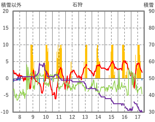 | 日 | 時 | 気温 | 降水 | 風向/風速 | 日照 | 積雪 | 降雪 |