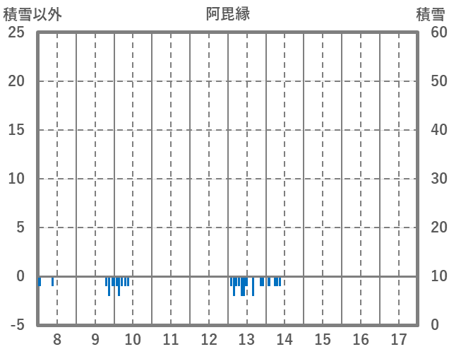 | 日 | 時 | 気温 | 降水 | 風向/風速 | 日照 | 積雪 | 降雪 |