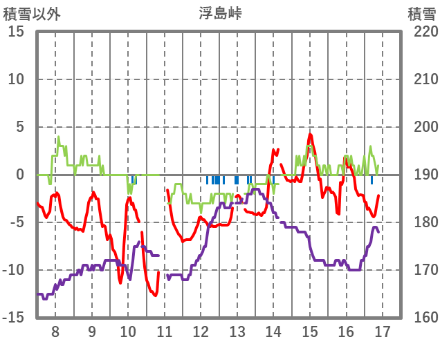 | 日 | 時 | 気温 | 降水 | 風向/風速 | 日照 | 積雪 | 降雪 |