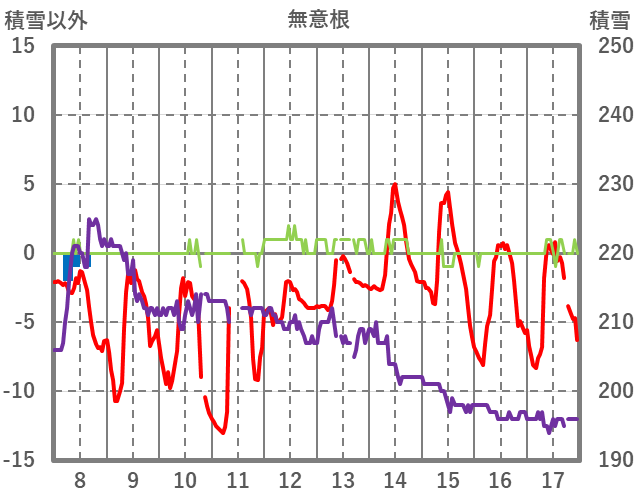 | 日 | 時 | 気温 | 降水 | 風向/風速 | 日照 | 積雪 | 降雪 |