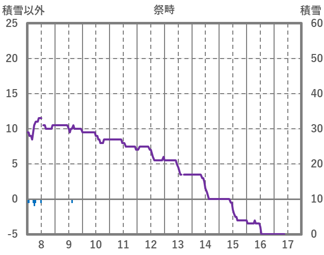 | 日 | 時 | 気温 | 降水 | 風向/風速 | 日照 | 積雪 | 降雪 |