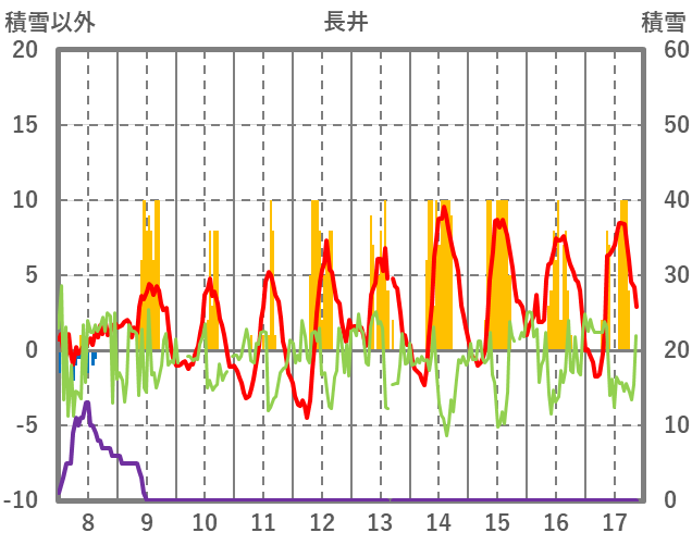 | 日 | 時 | 気温 | 降水 | 風向/風速 | 日照 | 積雪 | 降雪 |