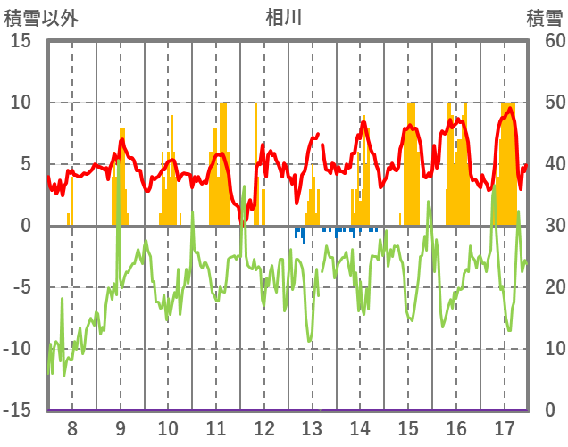 | 日 | 時 | 気温 | 降水 | 風向/風速 | 日照 | 積雪 | 降雪 |