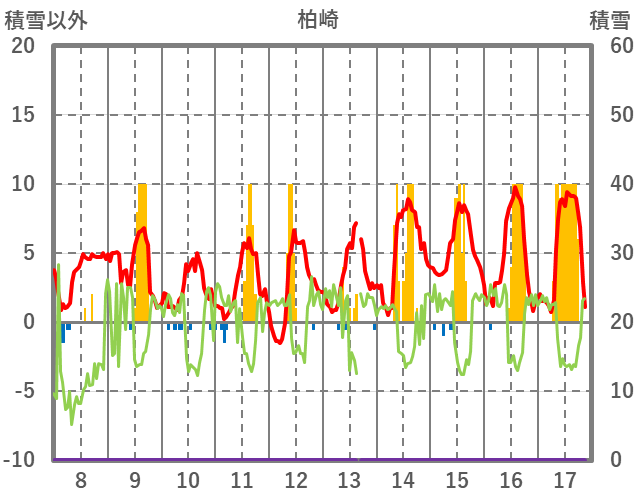 | 日 | 時 | 気温 | 降水 | 風向/風速 | 日照 | 積雪 | 降雪 |
