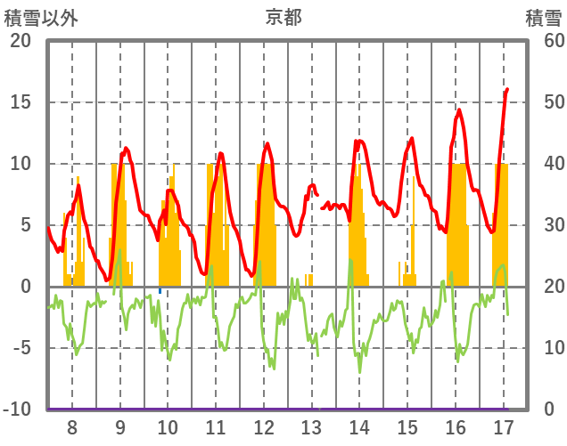 | 日 | 時 | 気温 | 降水 | 風向/風速 | 日照 | 積雪 | 降雪 |