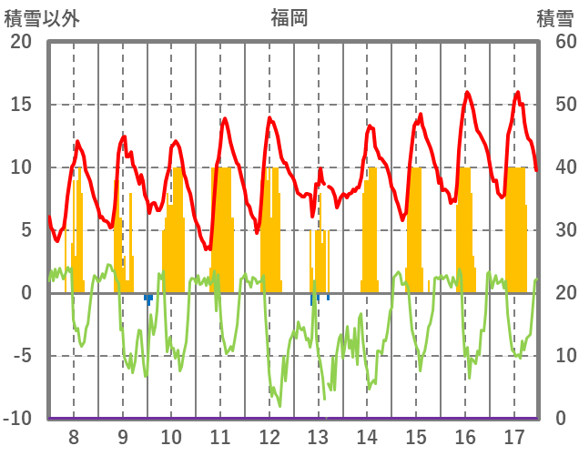 | 日 | 時 | 気温 | 降水 | 風向/風速 | 日照 | 積雪 | 降雪 |