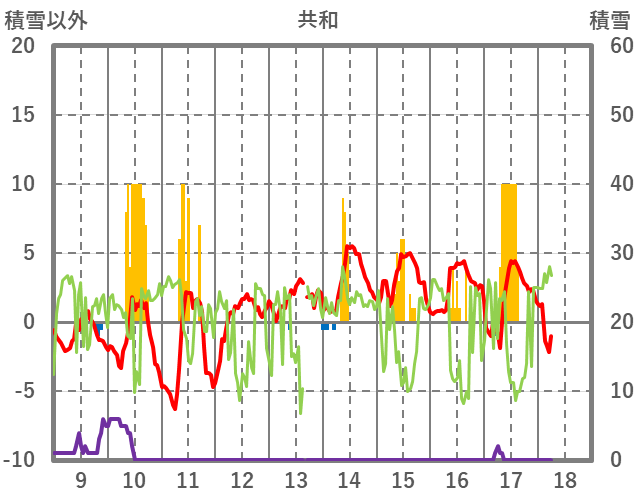 | 日 | 時 | 気温 | 降水 | 風向/風速 | 日照 | 積雪 | 降雪 |