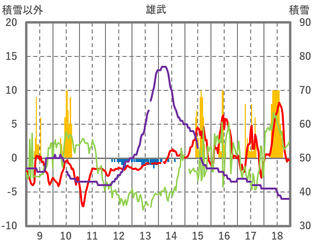 | 日 | 時 | 気温 | 降水 | 風向/風速 | 日照 | 積雪 | 降雪 |